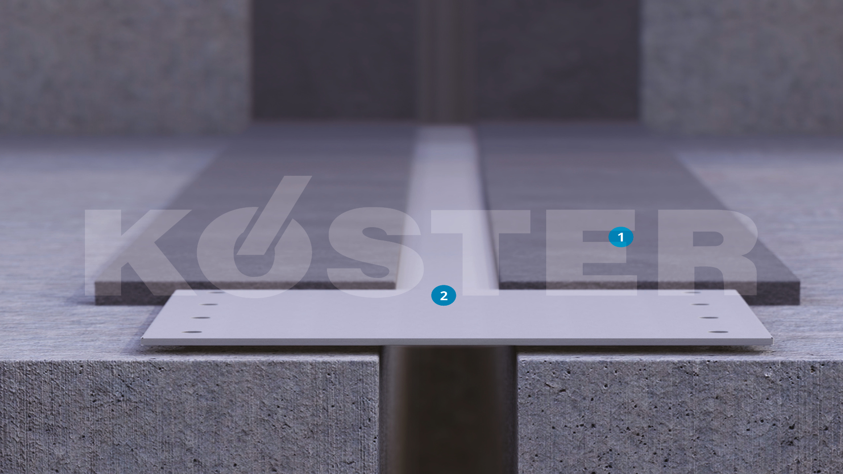 Bevægelsesfuger, der er mere end 35 mm brede, tætnes med KÖSTER Fugebånd 20 eller KÖSTER Fugebånd 30 (henholdsvis 20 eller 30 cm bredde).