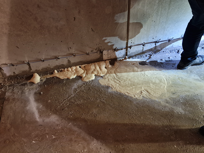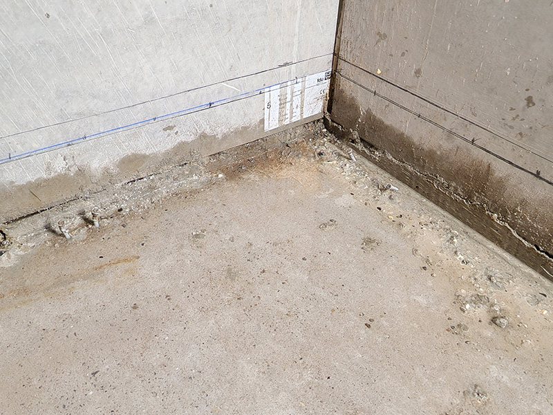 Im Keller dieses EFH in Dortmund drang durch die Arbeitsfuge im Wand-/Sohlenanschluss Wasser ins Gebäude. Durch eine Injektion mit KÖSTER 2 IN 1 konnte diese Arbeitsfuge dauerhaft gegen von außen eindringendes Wasser abgedichtet werden. Im Anschluss wurde eine Hohlkehle aus KÖSTER Sperrmörtel WU eingebaut.