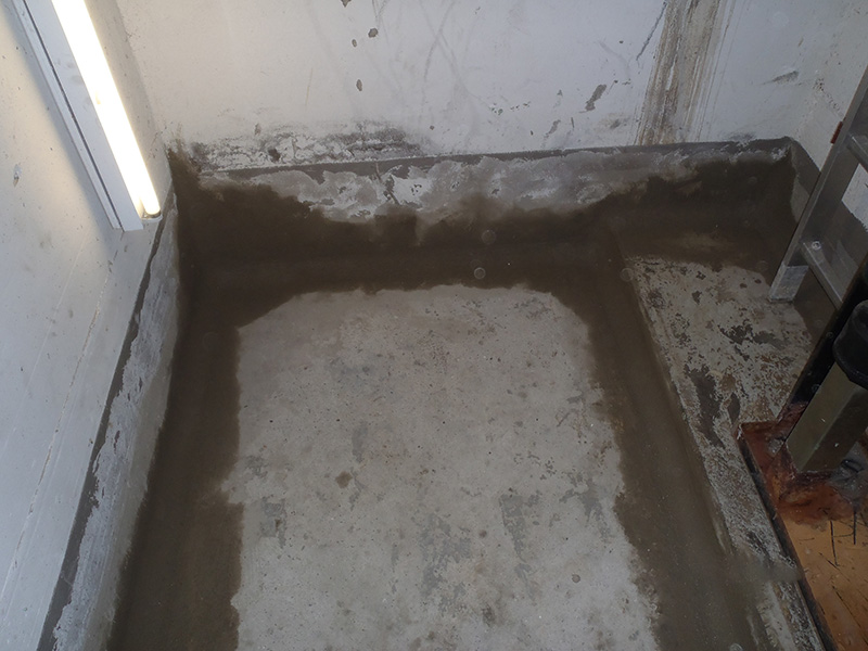 Bei Starkregen lief regelmäßig Wasser in den Fahrstuhlschacht. Da der TÜV dies bemängelte, musste der Schacht abgedichtet werden. Zunächst wurde eine Injektion mit KÖSTER 2 IN 1 Harz durchgeführt und anschließend eine Dichtungskehle aus KÖSTER Sperrmörtel WU hergestellt. Eine schöne Bodenbeschichtung mit KÖSTER CT 215 Universal Floor schützt von nun an auch nachhaltig den Schacht.
