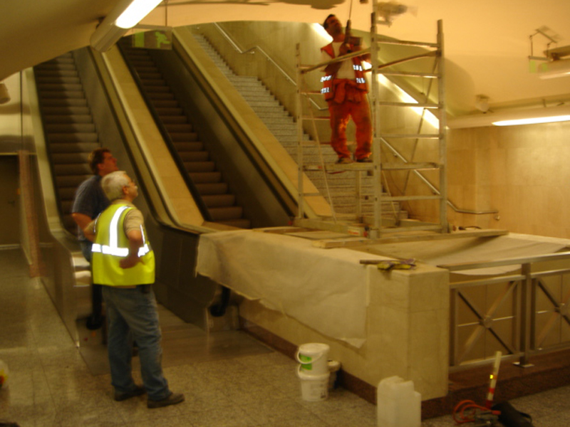 Partially waterbearing cracks in the stairway (until 4 levels below the surface) and the service and cable shaft of this metro station near the acropolis in Athens were waterproofed. The injection resin KÖSTER KB 2 IN 1 was the ideal product for this project. If the material comes into contact with water, it reacts to form a highly elastic foam. Under dry conditions, the material reacts to form an elastic solid body resin.