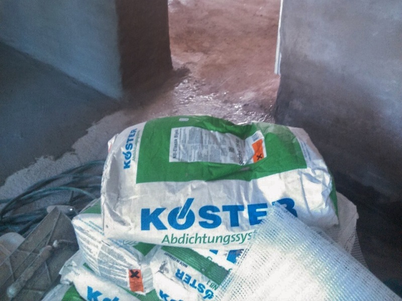 Izveden prekid kapilarne vlage injektiranjem (Mautrol 2K), nakon toga izravnanje zidova od opeke reparaturnim mortom (Reparaturni Mort NC) i ugradnja hidroizolacijskog cementnog premaza otpornog na negativan hidrostatski pritisak do 13 bara (NB 1 Sivi).