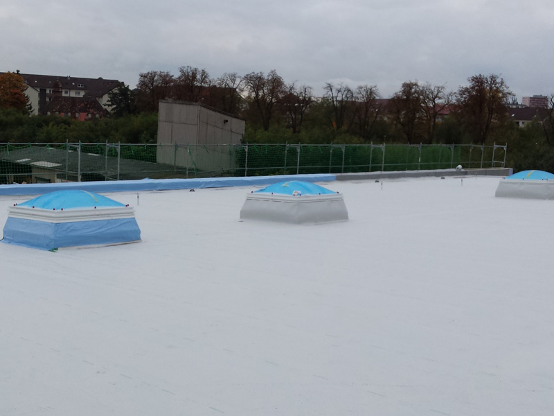 Dachabdichtung mit selbstklebenden TPO-Dachba, Neubau LIDL Markt, Schwetzingen, Deutschland