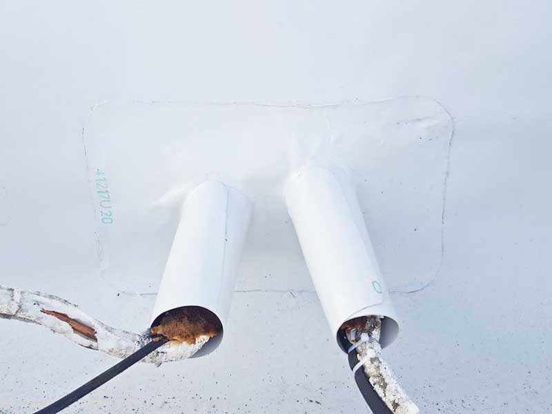 Refurbishment of an old bitumen roof waterproofing. The old surface was covered with KÖSTER TPO membranes with a total area of 1200 m².
