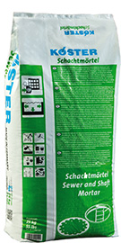 KÖSTER Kanal- og skaktmørtel er en vandtæt, hurtigthærdende reparationsmørtel til kanaler og skakte, specielt i spildevandsanlæg. Produktet er fiberarmeret, udvikler meget store trykstyrker og er let at forarbejde. Tilladt til brug i drikkevandsområder.